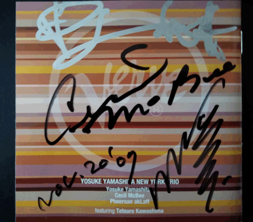裏ジャケに07年11月20日の草月ホールで行われた際のライヴで貰ったと思われる直筆サイン入り。上からフェローン・アクラフ、セシル・マクビー、山下洋輔。